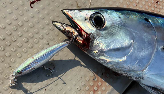 Upon retrieval, the Shaking HeadS quickly rises and deploys a captivating side-to-side wobbling (head-shaking) action at slow to medium speeds, mimicking a distressed baitfish. Built with a robust wire-through construction and equipped with premium BKK hooks, this lure ensures exceptional strength and reliability, even against aggressive pelagic species. It is also designed for skipping across the surface, making it effective for shallow area exploration and surface attacks.